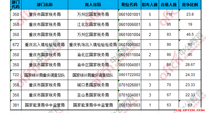 截止到19日8時,競爭比例的職位為‘重慶機場出入境檢驗檢疫局’一職,招錄1人,截止到19日8時通過人數(shù)為90人。但是還有少數(shù)崗位沒有人去報名。