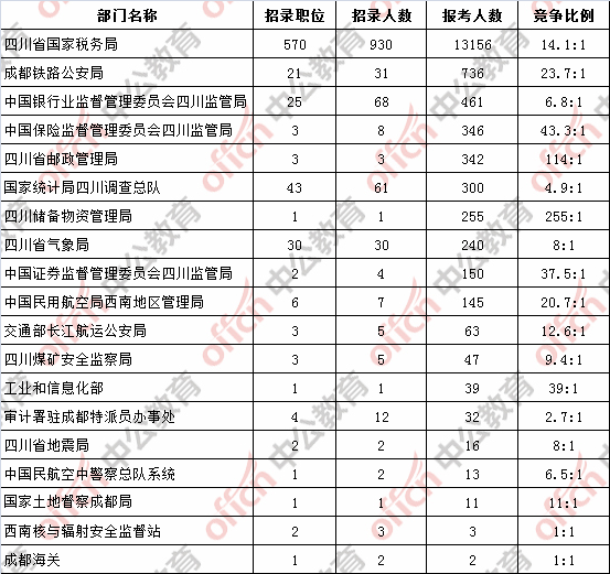 截止到19日16時(shí),通過審核人數(shù)前三位的部門依次是:四川省國家稅務(wù)局,成都鐵路公安局,中國銀行業(yè)監(jiān)督管理委員會(huì)四川監(jiān)管局,三部門通過審核總?cè)藬?shù)達(dá)14353人,占已通過審核總?cè)藬?shù)87.7%。