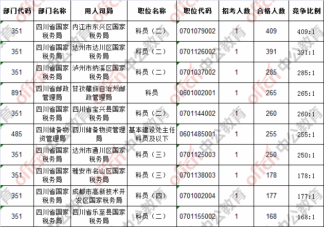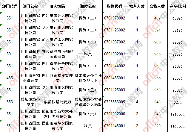 首日報(bào)名通過審核人數(shù)前十的職位主要集四川省國家稅務(wù)局等部門,具體信息如下: