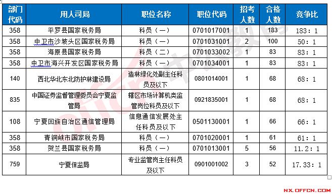 2017國考寧夏地區(qū)各部門報(bào)考情況
