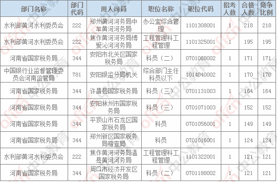 截止19日16時(shí),招錄比例的職位為鄭州黃河河務(wù)局中牟黃河河務(wù)局辦公室綜合管理一職,招錄1人,截止19日16時(shí)通過(guò)人數(shù)為218人。