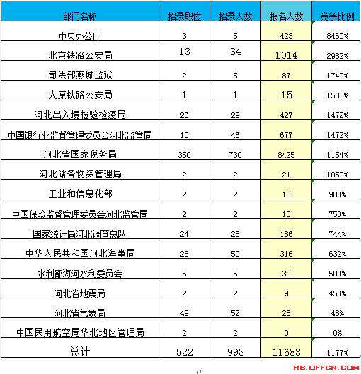 截止到19日16時(shí),通過審核人數(shù)前三位的部門依次是:河北省國(guó)家稅務(wù)局、北京鐵路公安局、中國(guó)銀行業(yè)監(jiān)督管理委員會(huì)河北監(jiān)管局,三部門通過審核總?cè)藬?shù)達(dá)10116人,占通過審核總?cè)藬?shù)的86%。