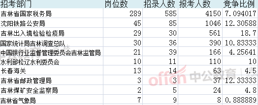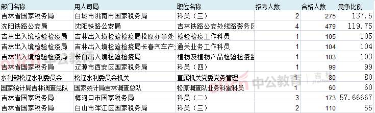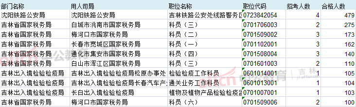報(bào)名通過審核人數(shù)前十的職位主要集中在吉林省國稅局和國家統(tǒng)計(jì)局吉林調(diào)查總隊(duì),具體信息如下:
