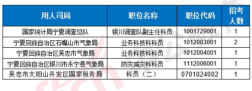 截止到20日8時,工作地點在寧夏的職位共有5個無人報考。下面是無人報考職位一覽表,中公網(wǎng)校專家建議廣大考生多關(guān)注一些較冷職位,避免激烈競爭,結(jié)合自身條件,找到屬于自己的職位。