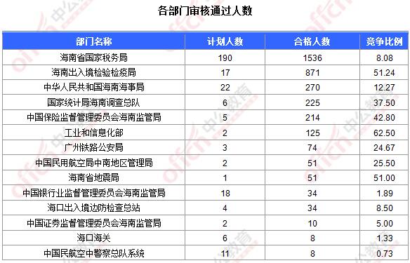 【截至20日8時】2017國考報名海南3511人過審 海關繼續(xù)“遭冷”