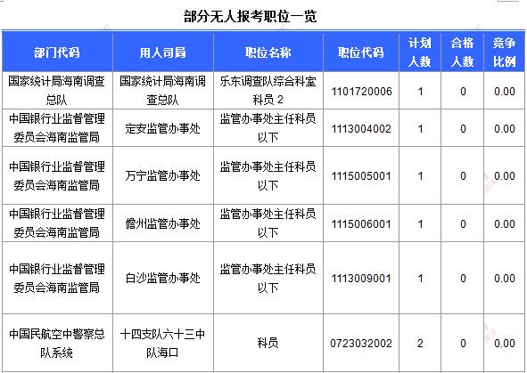 截止到20日8時,各部門報名仍以國稅局和海南出入境檢驗檢疫局為主,而中國證券監(jiān)督管理委員會海南監(jiān)管局、??诤jP、中國民航空中警察總隊系統(tǒng)的報名人數(shù)幾乎沒有增加,仍是可憐的個位數(shù)。報名已漸漸進入高峰期間,這時候應該多把精力放在報名人數(shù)較少的職位上了。