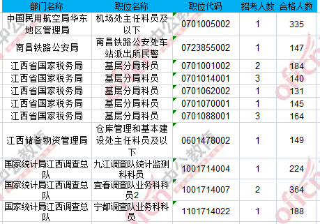 報名通過審核人數(shù)前十的職位主要集中在江西省國家稅務(wù)局、國家統(tǒng)計局江西調(diào)查總隊具體信息如下: