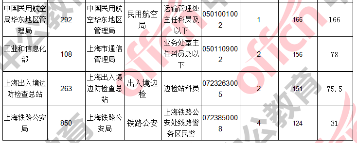 報(bào)名通過(guò)審核人數(shù)前十的職位主要集中在上海出上海海關(guān)、上海出入境邊防檢查總站、中國(guó)民用航空局華東地區(qū)管理局,具體信息如下: