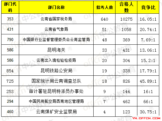 為幫助廣大考生更清晰的了解今日?qǐng)?bào)名情況,云南中公網(wǎng)校整理了審核通過(guò)人數(shù)部門排名,供廣大考生參考: