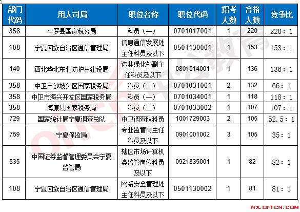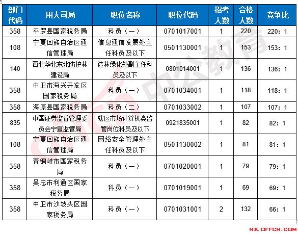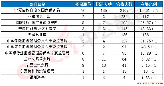 2017國考寧夏地區(qū)各部門報考情況