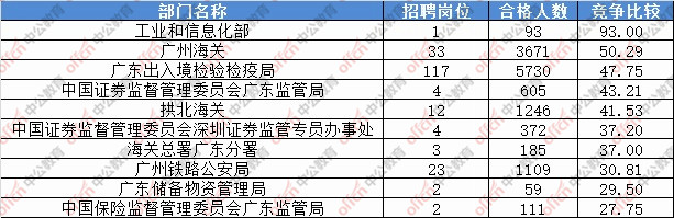為幫助廣大考生更清晰的了解今日報名情況,廣東中公網(wǎng)校整理了審核通過人數(shù)前十位的部門以及競爭比例最激烈的十大部門,供廣大考生參考: