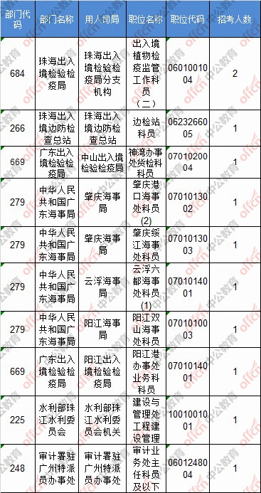 截止到20日16時,工作地點在廣東的職位共有58個無人報考,占全部職位的5.5%。下面是無人報考職位一覽表,中公網(wǎng)校專家建議廣大考生多關(guān)注一些較冷職位,避免激烈競爭,結(jié)合自身條件,找到屬于自己的職位。