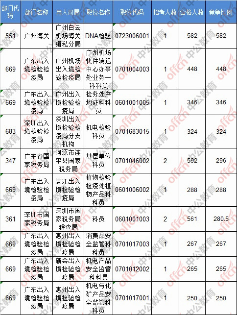 截止到20日16時,競爭比例的職位為廣州海關(guān)廣州白云機場海關(guān)緝私分局DNA檢驗一職,招錄1人,截止到20日16時通過人數(shù)為581人。