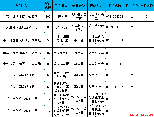 截止到20日16時,工作地點在重慶的職位共有9個無人報考,占全部職位的3%。下面是無人報考職位一覽表,中公教育專家建議廣大考生多關注一些較冷職位,避免激烈競爭,結合自身條件,找到屬于自己的職位。