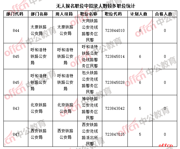 截止到20日16時,目前仍有920個崗位報考人數還未破零,占5.9%。中公教育分析,共有5個職位招錄人數在5人以上,均來自鐵路公安系統(tǒng),中公教育專家建議還未報名的考生可以重點考慮一下這些“老大難”職位。
