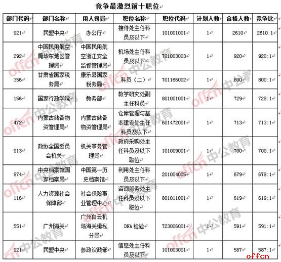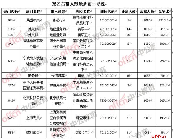 截止到10月21日8時(shí),報(bào)名人數(shù)千人的職位已增加為8個(gè)。民盟中央辦公廳(職位代碼101001001)一職已報(bào)名通過審核2610人,比昨日同期增長了1000余人,領(lǐng)先地位“無可撼動(dòng)”,相較與去年同期報(bào)名人數(shù)最多職位的2471人,7個(gè)職位過千,可以看出,今年的國考熱度有增無減。