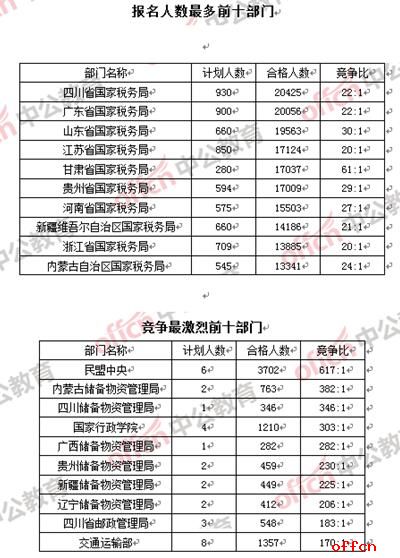今日國稅的強勁勢頭依舊不減,四川和廣東兩省的國稅兩萬大關(guān),與去年同期報名合格人數(shù)最多部門的18715人相比,今年國稅必定會成為一個“硝煙彌漫”的“廝殺重地”。