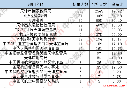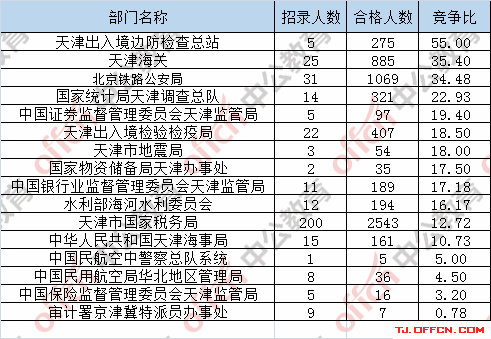 為幫助廣大考生更清晰的了解今日?qǐng)?bào)名情況,天津中公 網(wǎng)校整理了審核通過(guò)人數(shù)前五位的部門(mén)以及競(jìng)爭(zhēng)比例最激烈的五大部門(mén),供廣大考生參考: