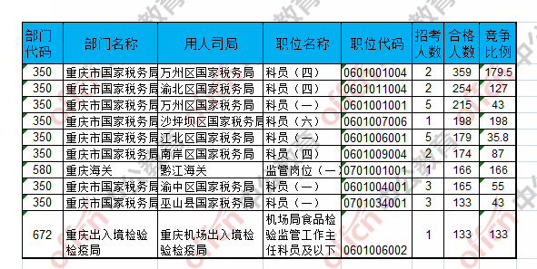 報名通過審核人數(shù)前十的職位主要集中在萬州區(qū)國家稅務(wù)局、渝北區(qū)國家稅務(wù)局、沙坪壩區(qū)國家稅務(wù)局等部門,具體信息如下: