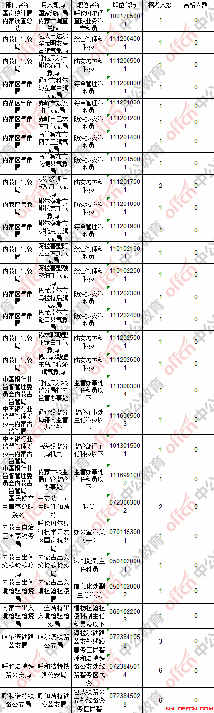 截止到21日16時,工作地點(diǎn)在內(nèi)蒙古29個職位無人報(bào)考。具體職位如下: