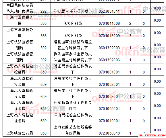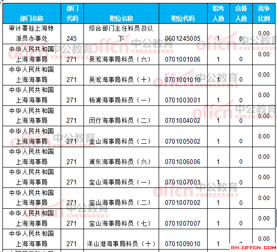 截止到21日16時,工作地點在上海的職位共有22個無人報考,占全部職位的6.45%。下面是無人報考職位一覽表,中公網(wǎng)校專家建議廣大考生多關(guān)注一些較冷職位,避免激烈競爭,結(jié)合自身條件,找到屬于自己的職位。