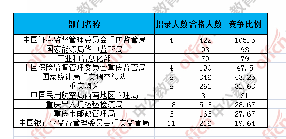 為幫助廣大考生更清晰的了解今日?qǐng)?bào)名情況,重慶中公網(wǎng)校整理了審核通過(guò)人數(shù)前十位的部門(mén)以及競(jìng)爭(zhēng)比例最激烈的十大部門(mén),供廣大考生參考: