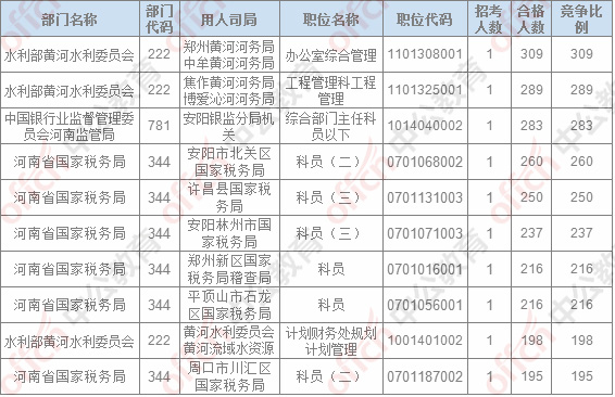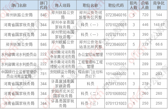 報名通過審核人數(shù)排名前列的職位主要集中在鄭州鐵路公安局、河南省國家稅務(wù)局,水利部黃河水利委員會,具體信息如下: