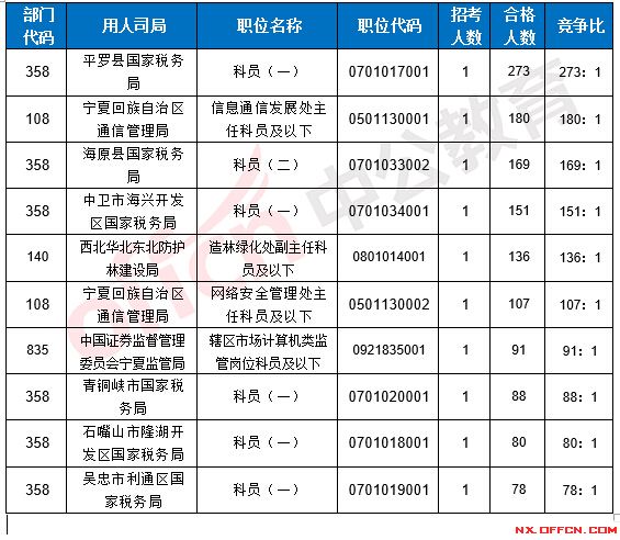 【截至22日8時】2017國考報名寧夏4549人過審 6職位低于面試比例