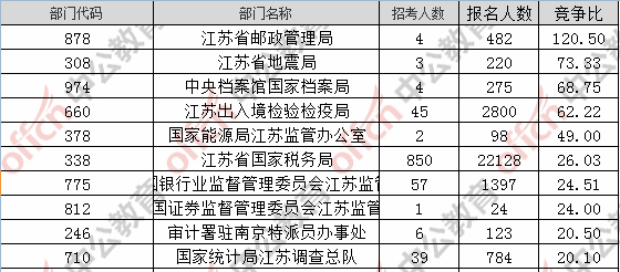 為幫助廣大考生更清晰的了解今日?qǐng)?bào)名情況,江蘇中公教育整理了審核通過人數(shù)前十位的部門以及競(jìng)爭(zhēng)比例最激烈的十大部門,供廣大考生參考: