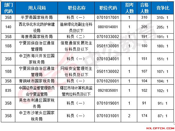 點(diǎn)擊查看>>>2017年國家公務(wù)員寧夏地區(qū)網(wǎng)上報名統(tǒng)計(jì)表(截止22日16時)