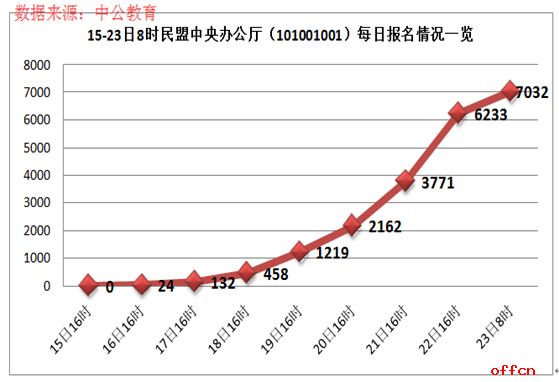2017國(guó)家公務(wù)員考試報(bào)名已經(jīng)進(jìn)入第九天,據(jù)中公網(wǎng)校數(shù)據(jù)統(tǒng)計(jì),截至23日8時(shí),報(bào)名系統(tǒng)已經(jīng)審核通過(guò)了917931人,遠(yuǎn)超去年同期的87.2萬(wàn)。較昨日同期的數(shù)據(jù)相比,報(bào)名合格人數(shù)增加了16萬(wàn)余人,平均競(jìng)爭(zhēng)比為33.92:1。目前仍有438個(gè)崗位“無(wú)人問(wèn)津”。中公網(wǎng)校專家通過(guò)數(shù)據(jù)分析發(fā)現(xiàn),有兩個(gè)數(shù)據(jù)給我們帶來(lái)了“意料之外”的“驚喜”——7032:1、30723 。