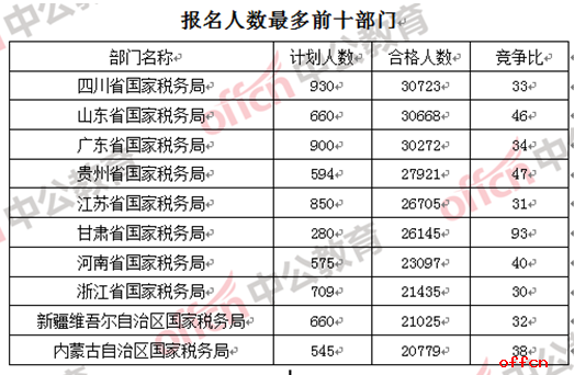 30723—最熱部門報(bào)考30723人,3省國(guó)稅破3萬(wàn)