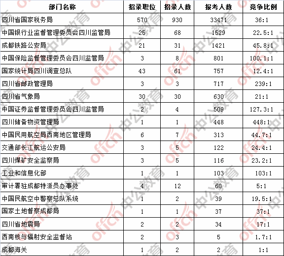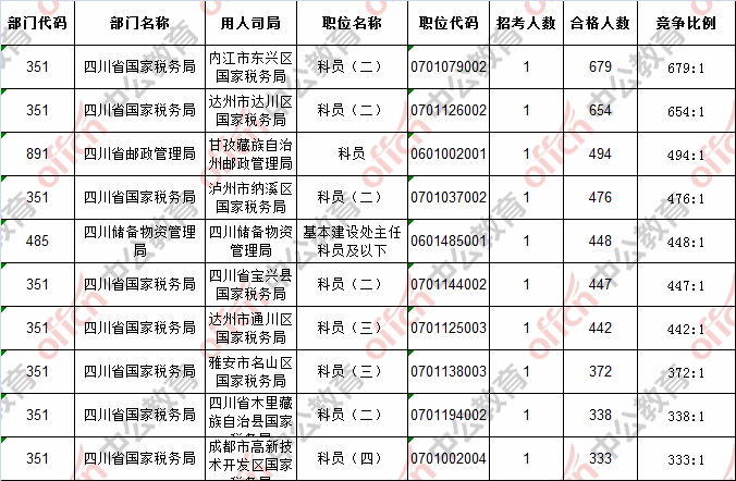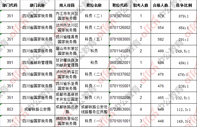 首日?qǐng)?bào)名通過審核人數(shù)前十的職位主要集四川省國(guó)家稅務(wù)局等部門,具體信息如下: