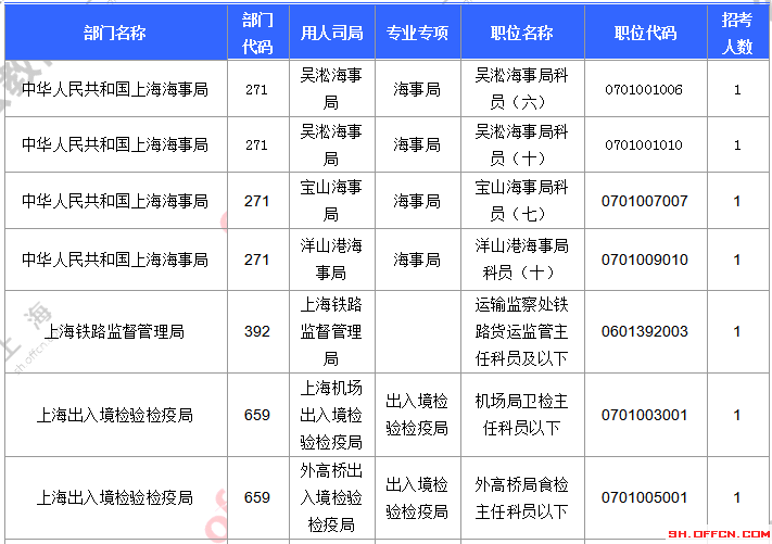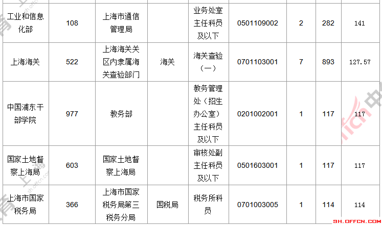 截止到23日16時,工作地點在上海的職位共有9個無人報考,占全部職位的2.6%。下面是無人報考職位一覽表,上海中公網(wǎng)校專家建議廣大考生多關(guān)注一些較冷職位,避免激烈競爭,結(jié)合自身條件,找到屬于自己的職位。