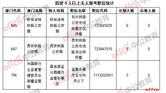 截至24日8時(shí),仍有323個(gè)崗位報(bào)考人數(shù)還未破零,約占2%,比去年同期多出104個(gè)職位,值得注意的是中央黨群機(jī)關(guān)和中央國(guó)家行政機(jī)關(guān)(本級(jí))均有掛零職位,分別為中共中央對(duì)外聯(lián)絡(luò)部二局蒙古語(yǔ)翻譯(職位代碼102004002)和國(guó)家外國(guó)專家局經(jīng)濟(jì)技術(shù)專家司項(xiàng)目處主任科員及以下(職位代碼407002001),迄今為止仍無(wú)考生問(wèn)津。“遇冷”職位大多分布于艱苦邊遠(yuǎn)地區(qū),尤其是一線職位,今日18時(shí)報(bào)名將截至,希望還有意參加本次國(guó)考的考生能考慮這些“遇冷”職位。