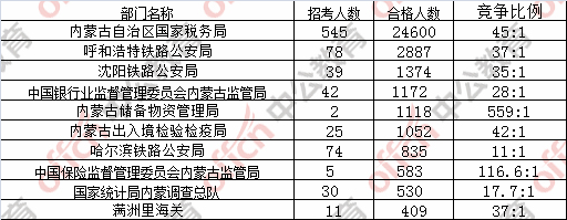 為幫助廣大考生更清晰的了解今日報名情況,內蒙古中公網(wǎng)校整理了審核通過人數(shù)前十位的部門,供廣大考生參考: