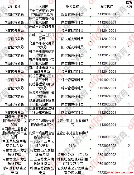 截止到24日8時,工作地點在內蒙古19個職位無人報考。具體職位如下: