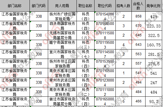 截至24日8時,競爭比例的職位為江蘇省國家稅務(wù)局南京市高淳區(qū)國家稅務(wù)局科員(四)一職,招錄1人,截至24日8時通過人數(shù)為541人。