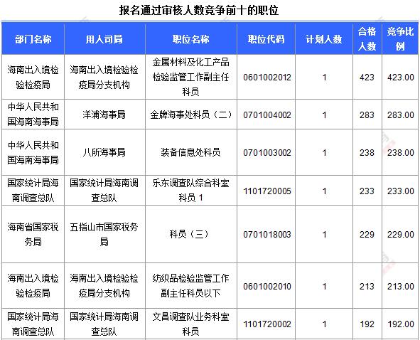 報(bào)名通過(guò)前十的職位具體信息如下: