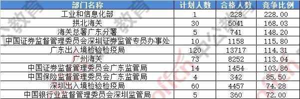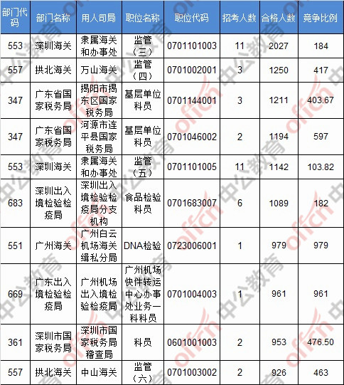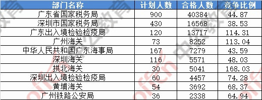報(bào)名通過(guò)審核人數(shù)前十的職位主要集中在深圳海關(guān)、拱北海關(guān)、廣東省國(guó)家稅務(wù)局,具體信息如下:
