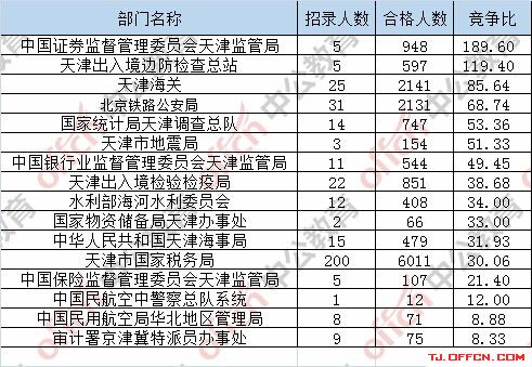 為幫助廣大考生更清晰的了解今日?qǐng)?bào)名情況,天津中公網(wǎng)校整理了審核通過人數(shù)前五位的部門以及競(jìng)爭(zhēng)比例最激烈的五大部門,供廣大考生參考: