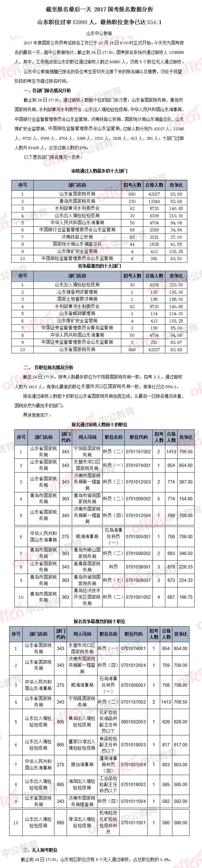 【截至24日17:30】2017國考報名山東職位過審83990人,最熱職位競爭已達(dá)854:1