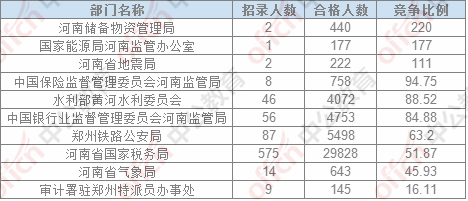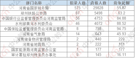 截止24日17:30,通過審核人數(shù)前三位的部門依次是:河南省國家稅務(wù)局、鄭州鐵路公安局,中國銀行業(yè)監(jiān)督管理委員會河南監(jiān)管局,三部門通過審核總?cè)藬?shù)40079人,占通過審核總?cè)藬?shù)的86.08%。