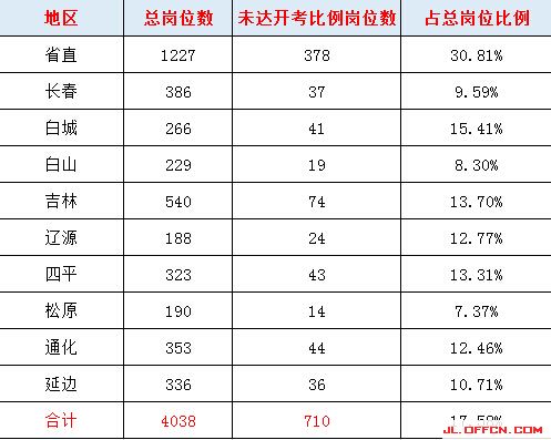 吉林省各地市截至15:00未達(dá)開考比例崗位如下: