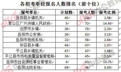 二、岳陽(yáng)公務(wù)員報(bào)名人數(shù):各招考單位分析
