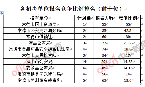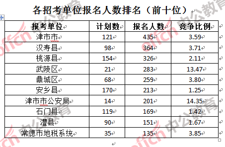 為幫助廣大考生更清晰的了解報名情況,中公教育整理了婁底市各招考單位的報名人數排名以及競爭比例排名,供廣大考生參考: