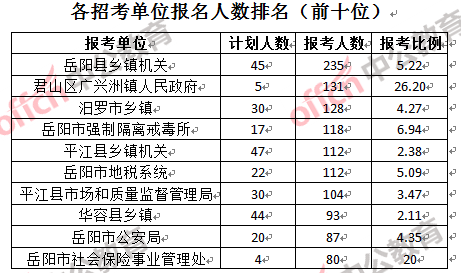 二、岳陽(yáng)公務(wù)員報(bào)名人數(shù):各招考單位分析