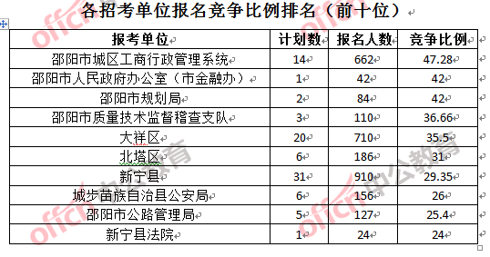 二、邵陽(yáng)公務(wù)員報(bào)名人數(shù):各招考單位分析