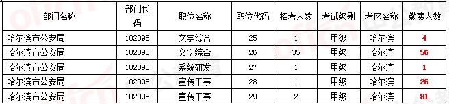 【哈爾濱】2014年黑龍江省公務員考試繳費人數(shù)統(tǒng)計(5月19日)