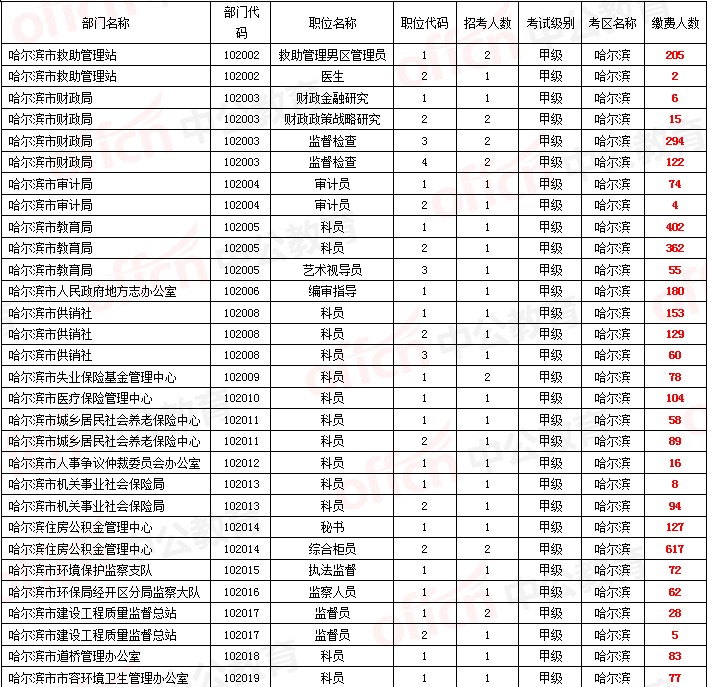 【哈爾濱】2014年黑龍江省公務(wù)員考試?yán)U費(fèi)人數(shù)統(tǒng)計(jì)(5月19日)